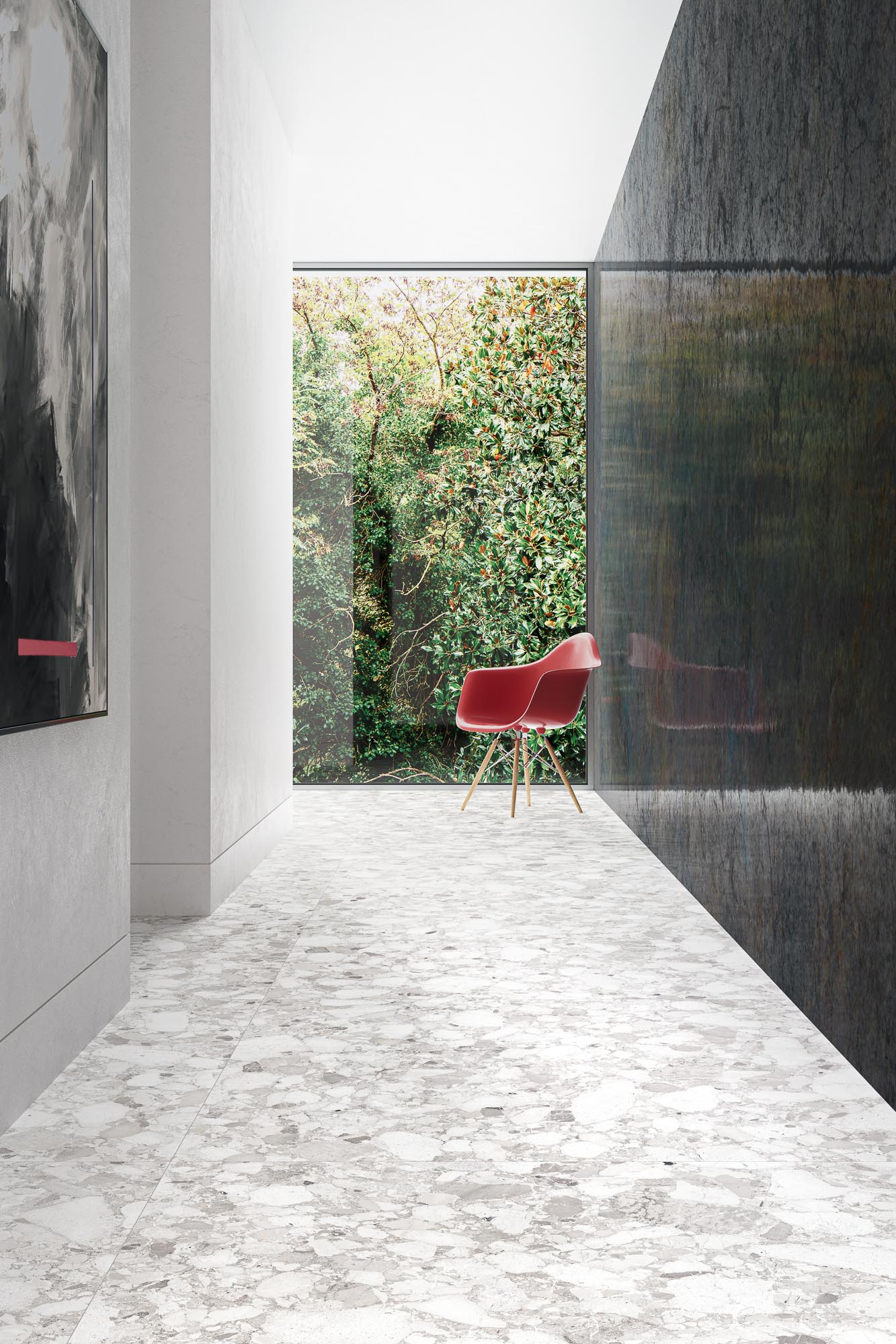 Hvis du er til terrazzo, har vi nu 63 nye farver – og 17 af dem lagerfører vi allerede. De kan ses i showroomet, og resten kan bestilles hjem. Ovenfor ses farverne Vulcano og Torcello.