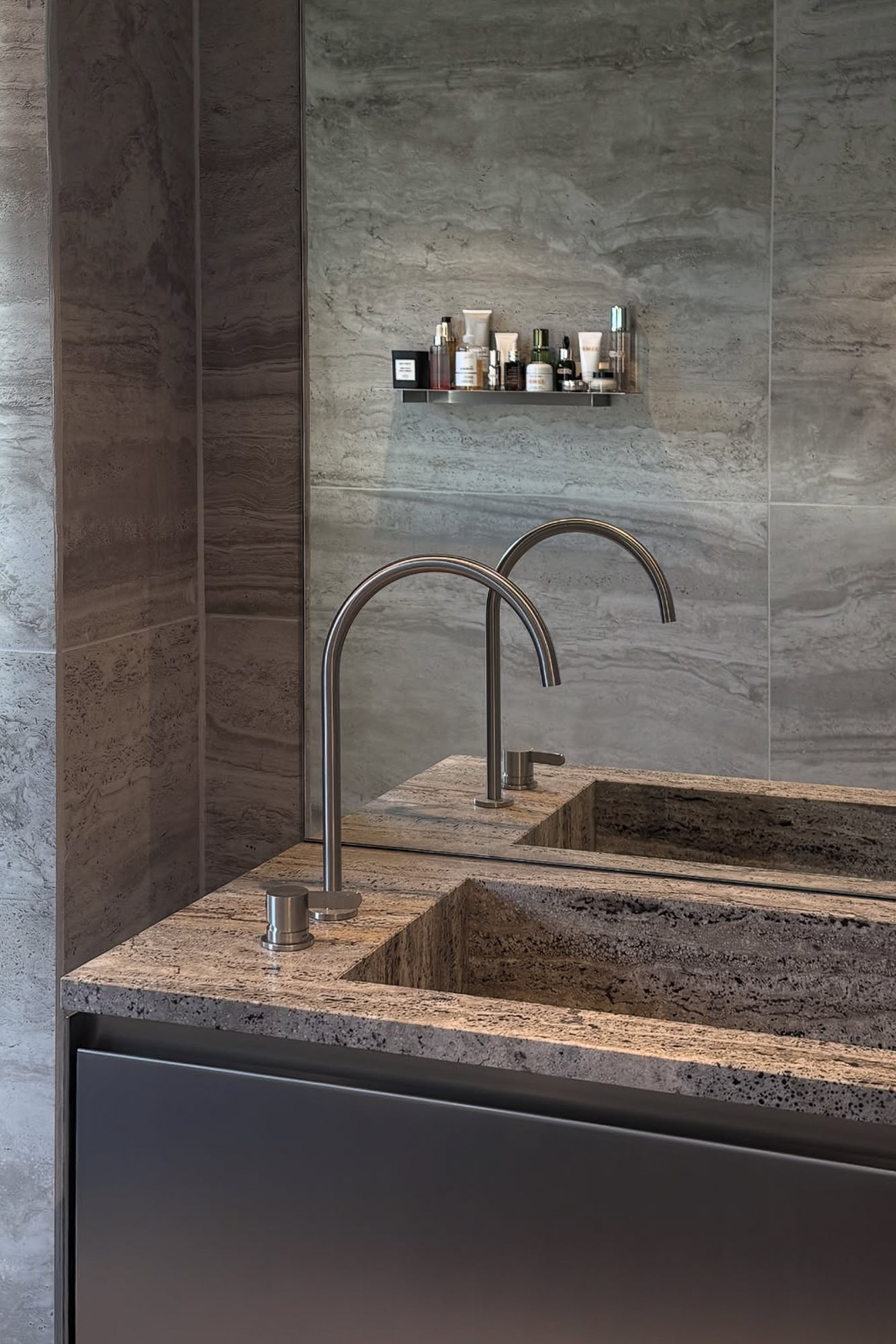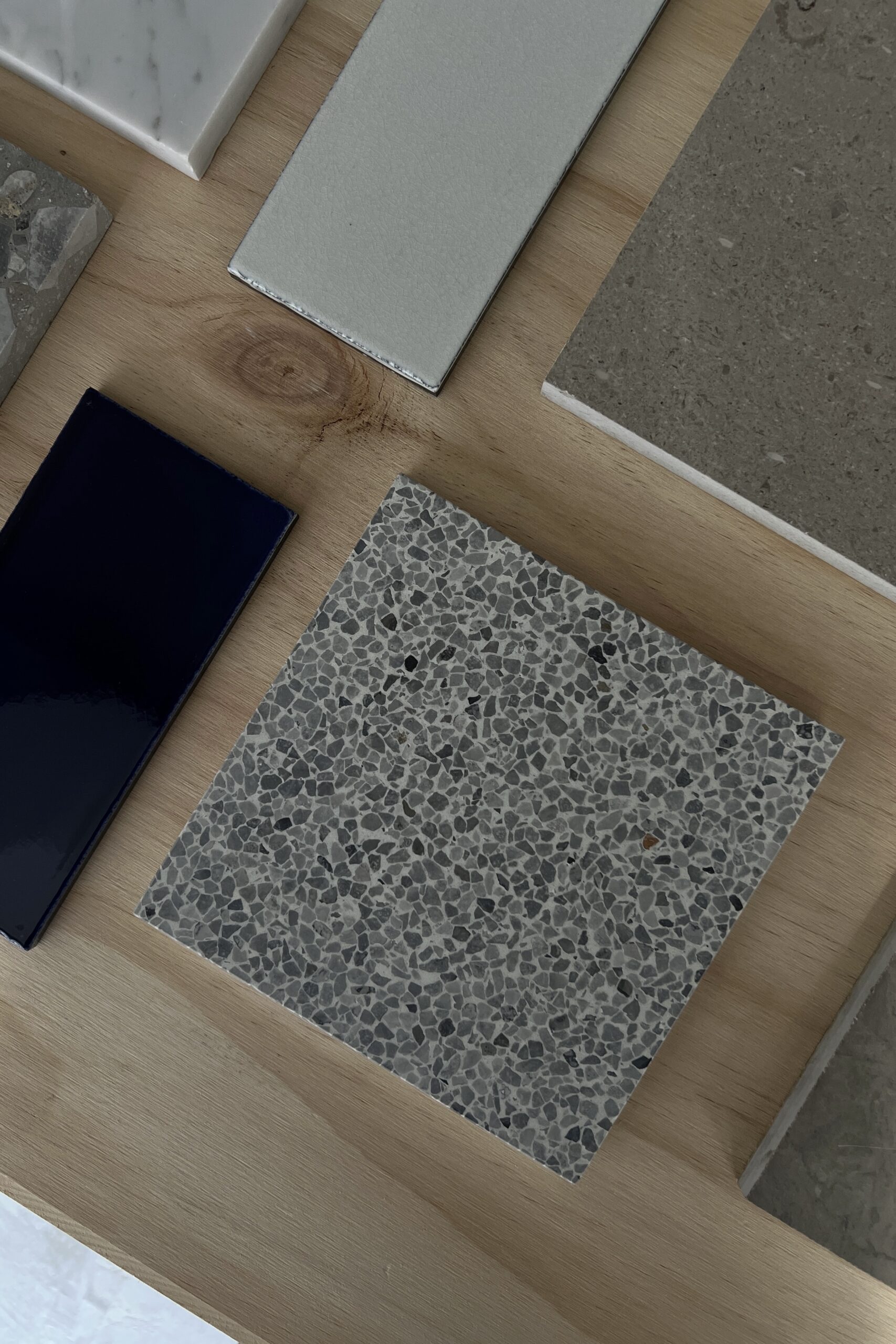 Vi arbejder med levende materialer – natursten, terrazzo, lavasten og keramik. Hver stenblok, hver glasur og hver brænding har sine egne variationer i farve, struktur og finish.
