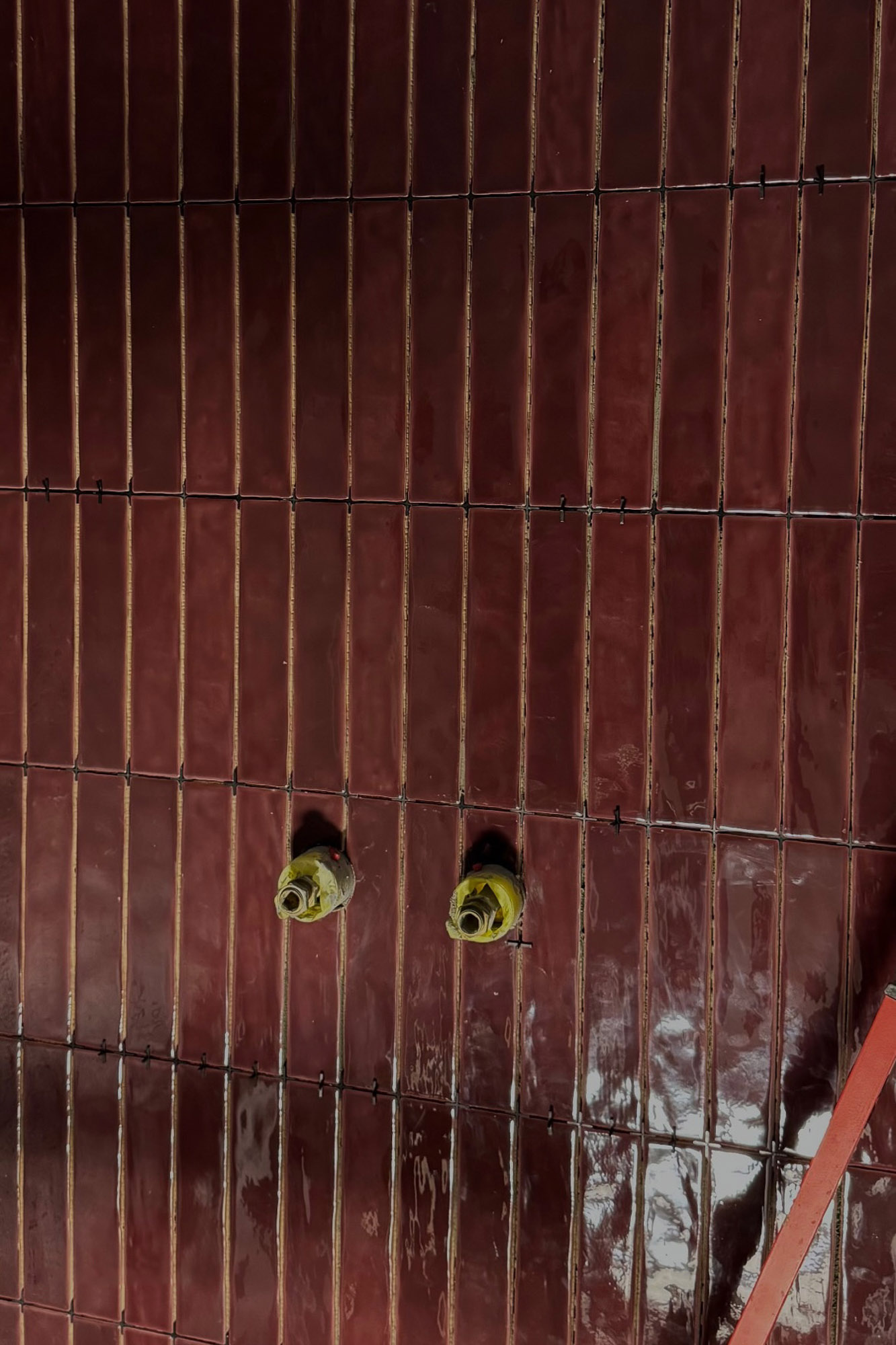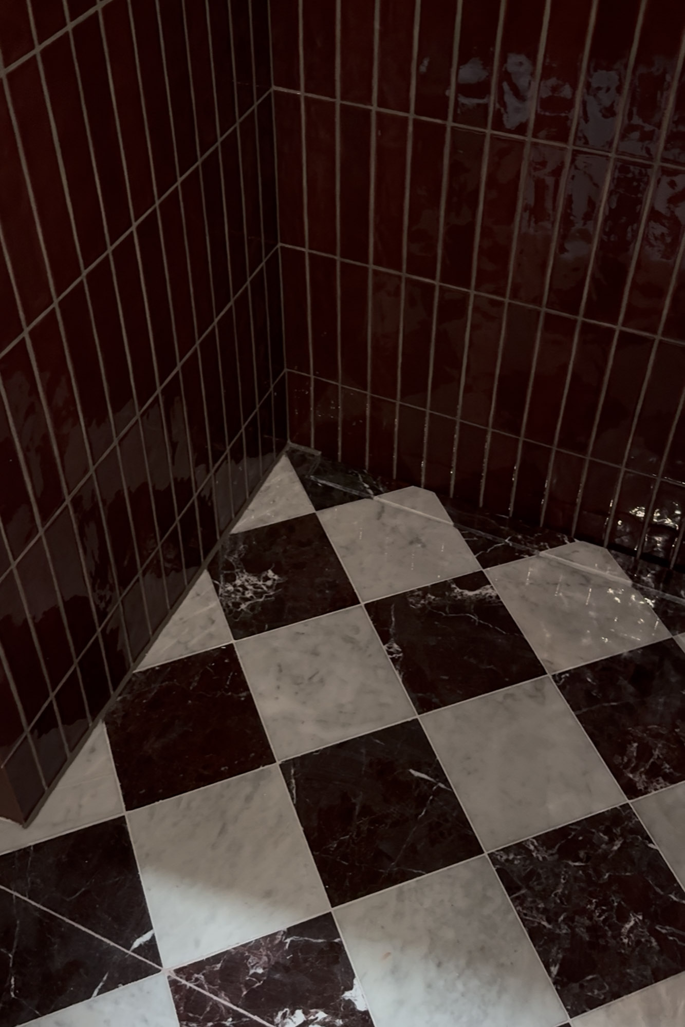 Ovenfor ses Bordeaux No. 5 – en flise, vi har udviklet til Nuura og deres udstilling under 3 Days of Design 2025. Baren er siden flyttet ind som en fast del af deres showroom, og flisen blev naturligt en del af vores sortiment.